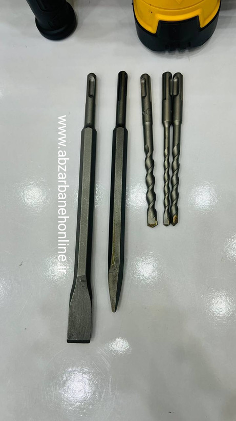 دریل تخریب دیوالت با برق 220 ولت کار می کند و می تواند850 وات توان خروجی داشته باشد. تعداد شیار های قلم گیر این ابزار 4 عدد می باشد و از سایز مته 26 میلی متر