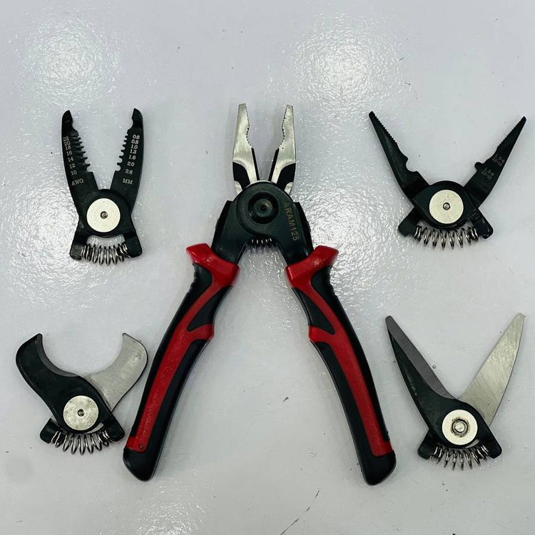 با کیفیت ترین انبردست 5 کاره که خیلی راحت و فقط با یک فشار ساده میتوانید سری هاش رو عوض کنید و از یک انبردست تبدیل به سیم لخت کن انواع سیم و سایزهای متفاوت بشه یا به یک ورق بر کاملا حرفهای تبدیل بشه و حتی میتوان به یک دم باریک کاملا حرفهای و فولادی تبدیل بشه و اگه تو کارهای صنعتی با کابل سرو کار دارید گزینه مناسبی رو داره با سری مخصوص کابل بریدن وحتی همین سری کابل بر قابلیت قیچی کردن درختان رو هم داره .