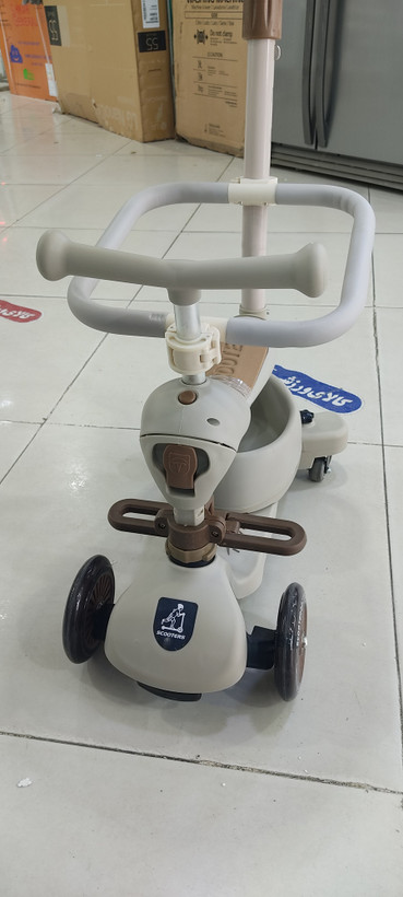اسکوتر دو کاره قابلیت اسکوتر و تبدیل شدند به اسکوتر صندلی دار که دور این مدل اسکوتر می توان حفاظ استفاده کرد که مانع از زمین افتادن فرزندان شما میشه